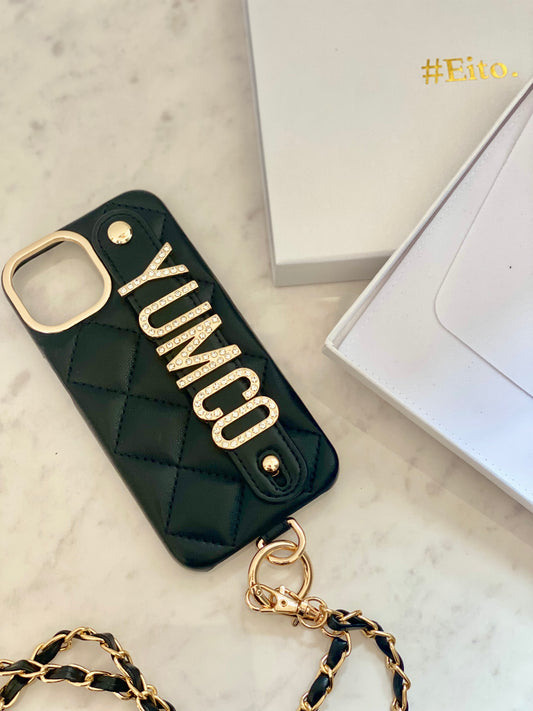 Hand strap (with card case) case✖︎ Text color [Rhinestone]